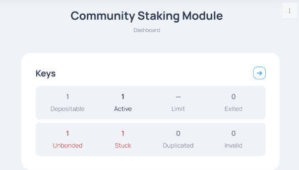 The `DASHBOARD` header provides a consolidated view of any exit requests issued to you in the form of `Unbonded` and `Stuck` keys.