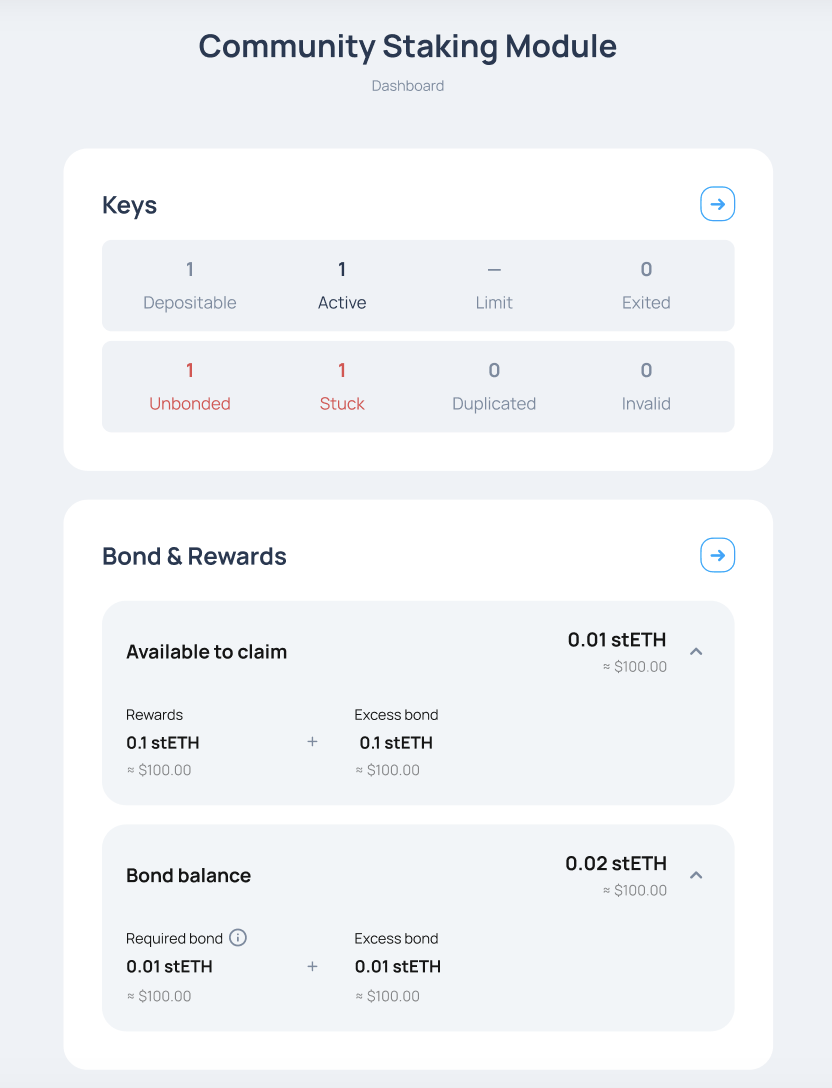 The 32 ETH deposited to activate each validator key will return to the Lido Protocol. Meanwhile, CSM Operators get their ETH-based bond deposits back from the Lido CSM Contract.
