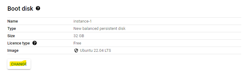 Under **OS and Storage**>>**Boot disk**, click on the **"change"** button.