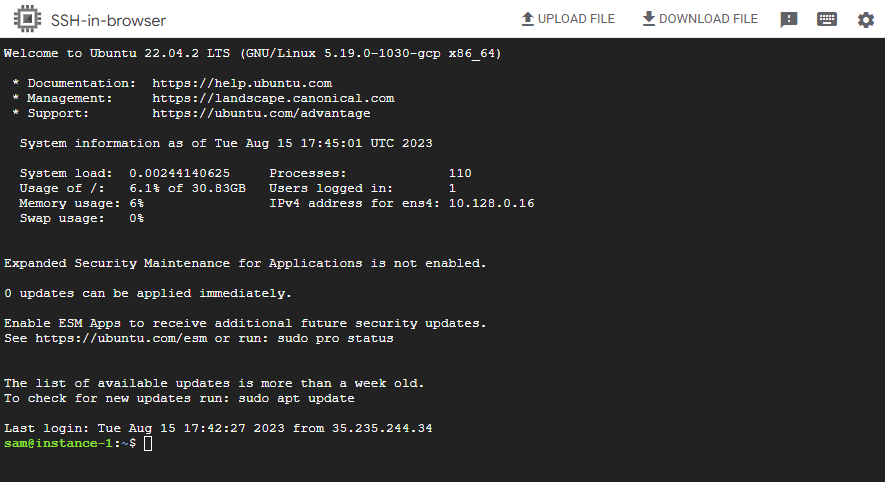 Once you are logged into your VM via SSH, run a general update using the command below.