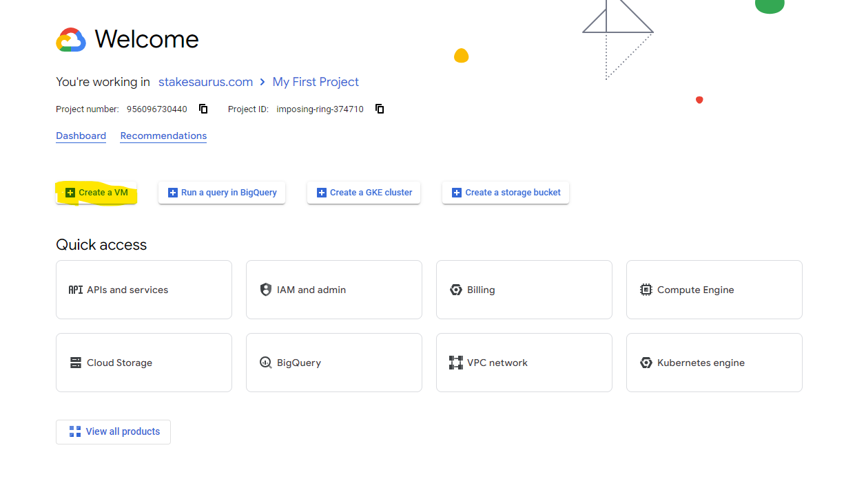 Go to your google cloud console and create a new VM.