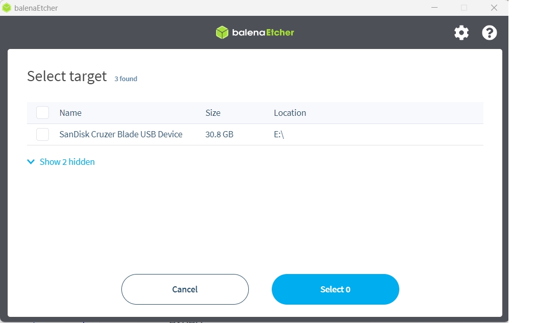 Select your new USB drive under the "Select target" option