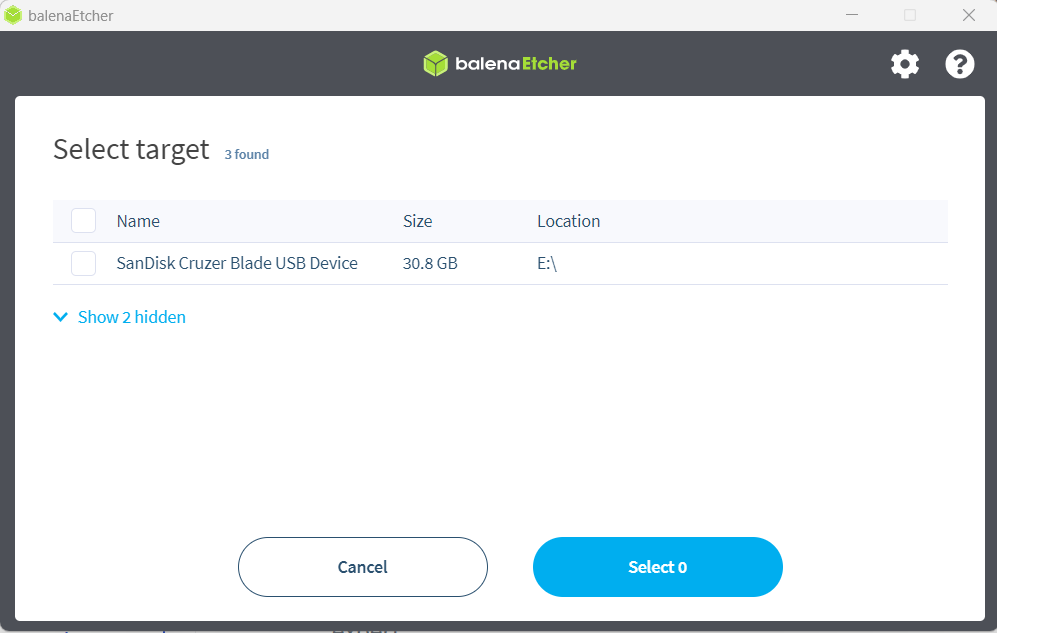 3. Select your new USB drive under the "Select target" option&#x20;