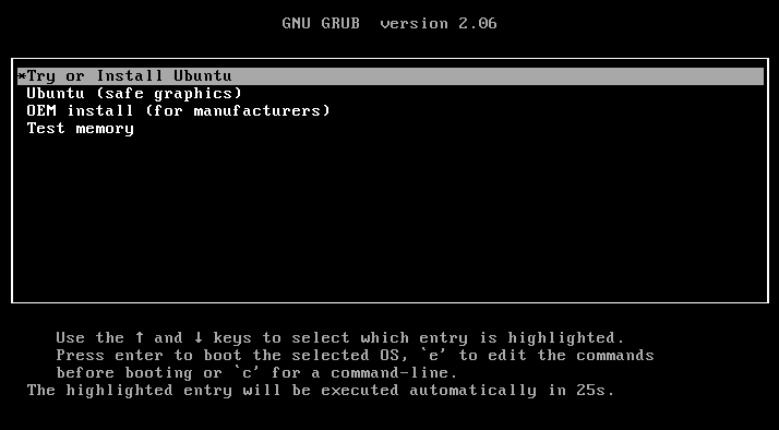 Plug your bootable USB drive into your NUC device and turn it on. Select `Try or Install Ubuntu` from the boot menu.&#x20;