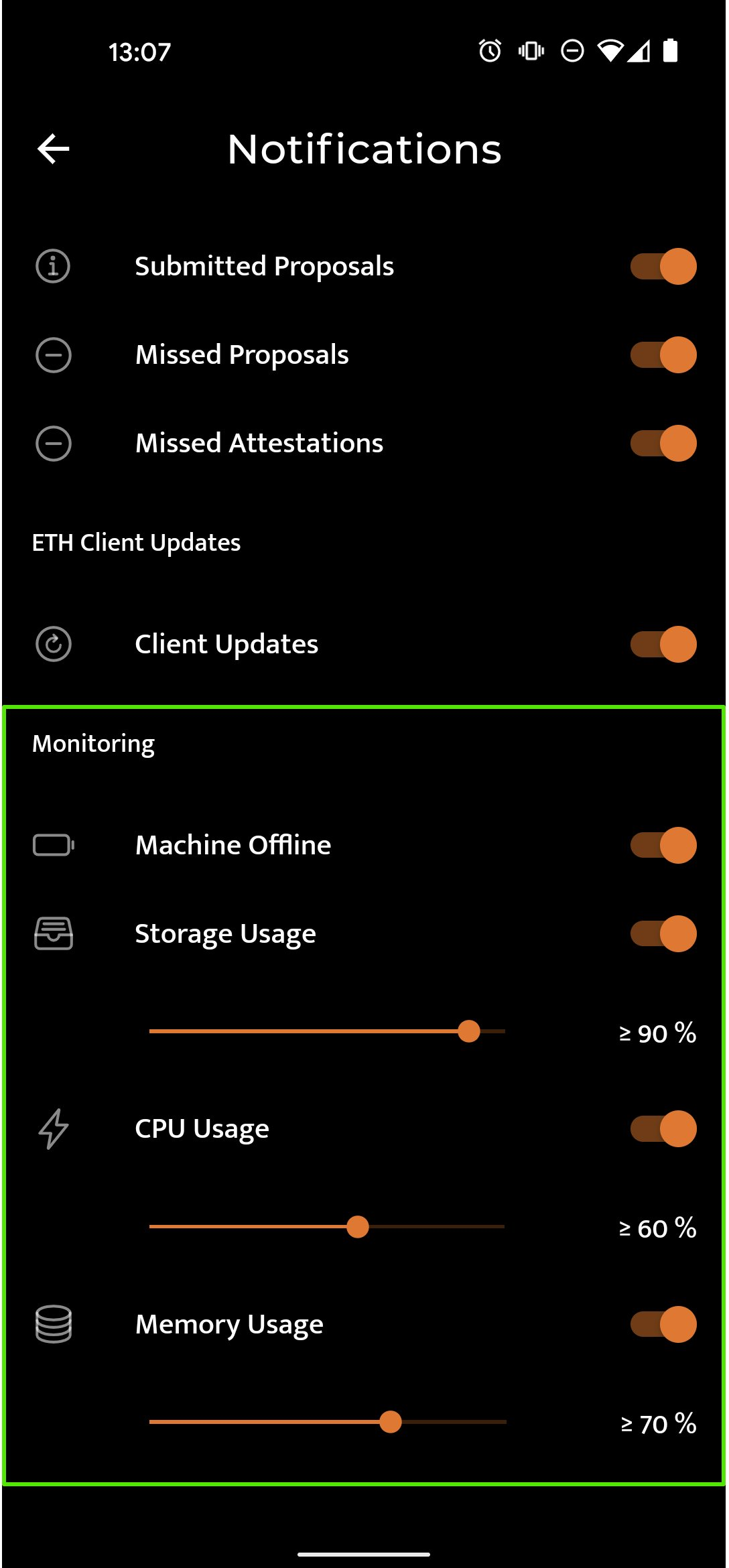 ## Beaconcha.in App settings