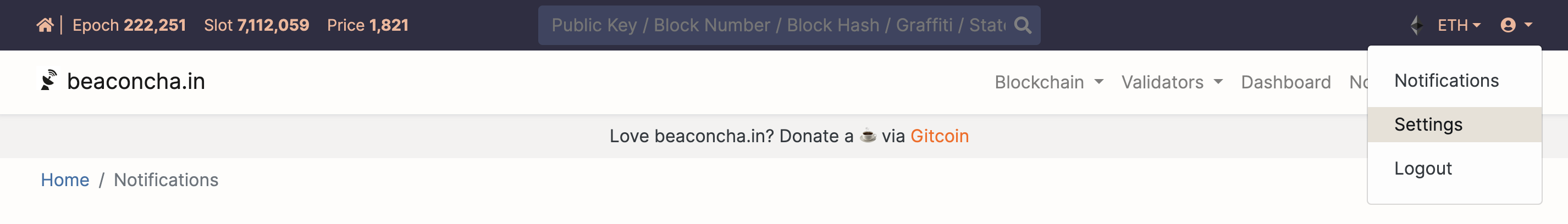 ## Beaconcha.in website settings