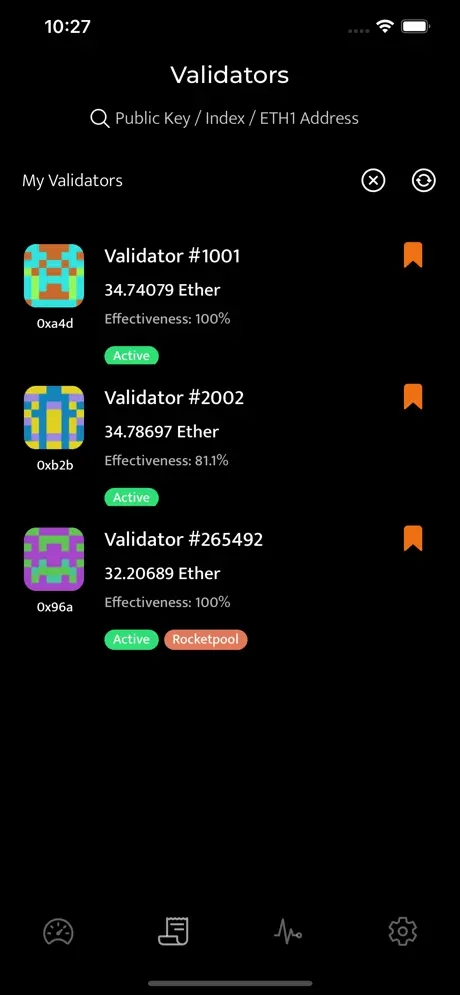 1st tab - Summary of validators in your watchlist