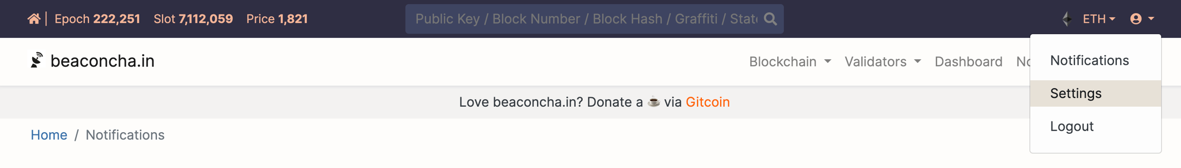 Beaconcha.in website settings