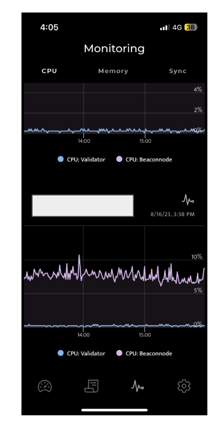 3rd tab - View more device level diagnostics like CPU, RAM, disk space, networking throughput, peer count etc