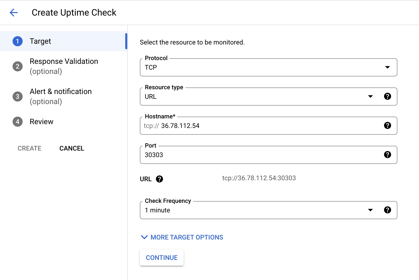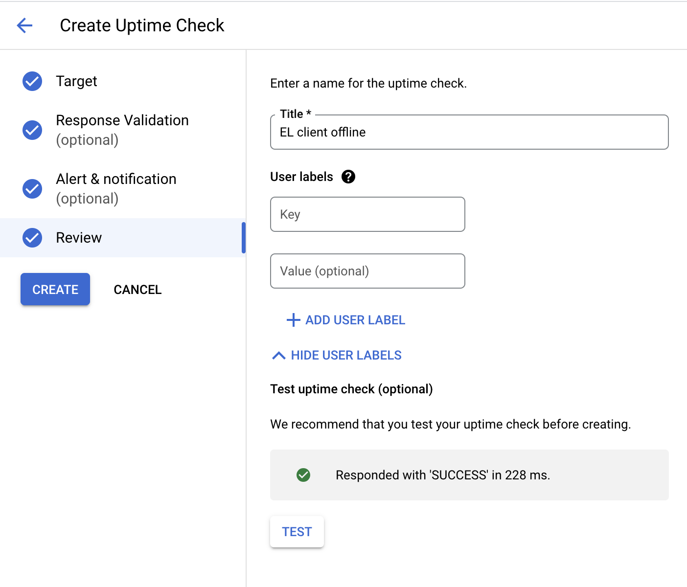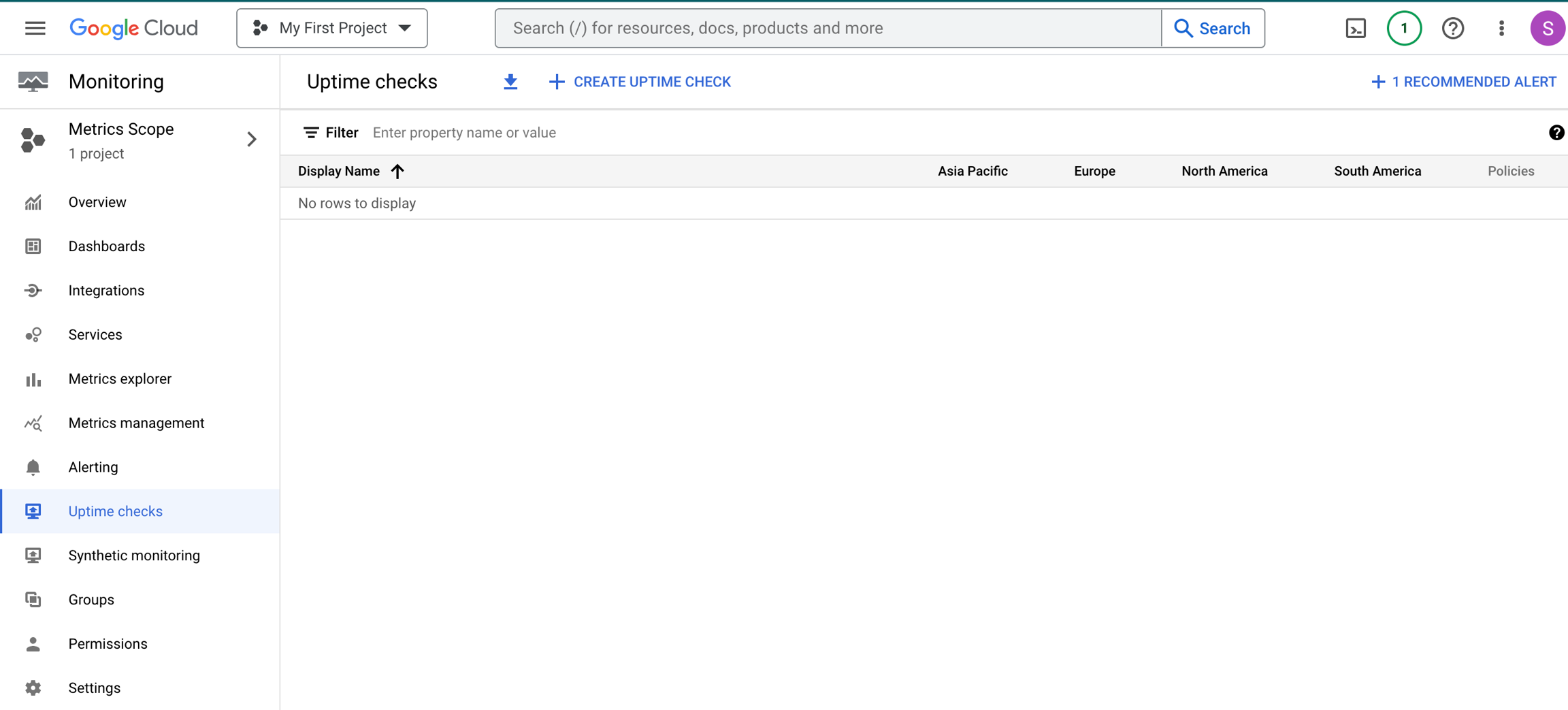 Click on +CREATE UPTIME CHECK located at the top panel.