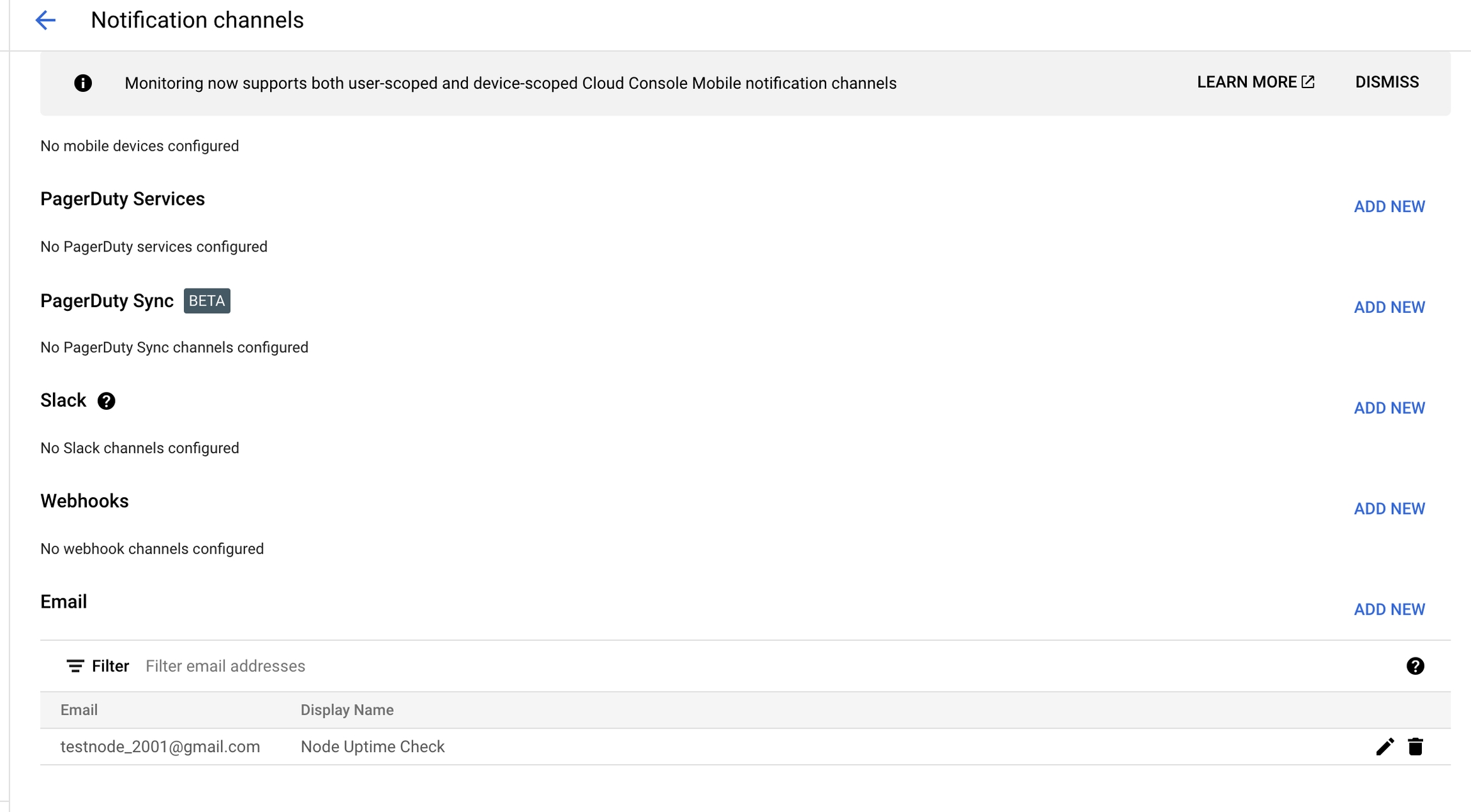 Set up your favourite notification channels. I like to keep it simple by using email as my alerts channel.