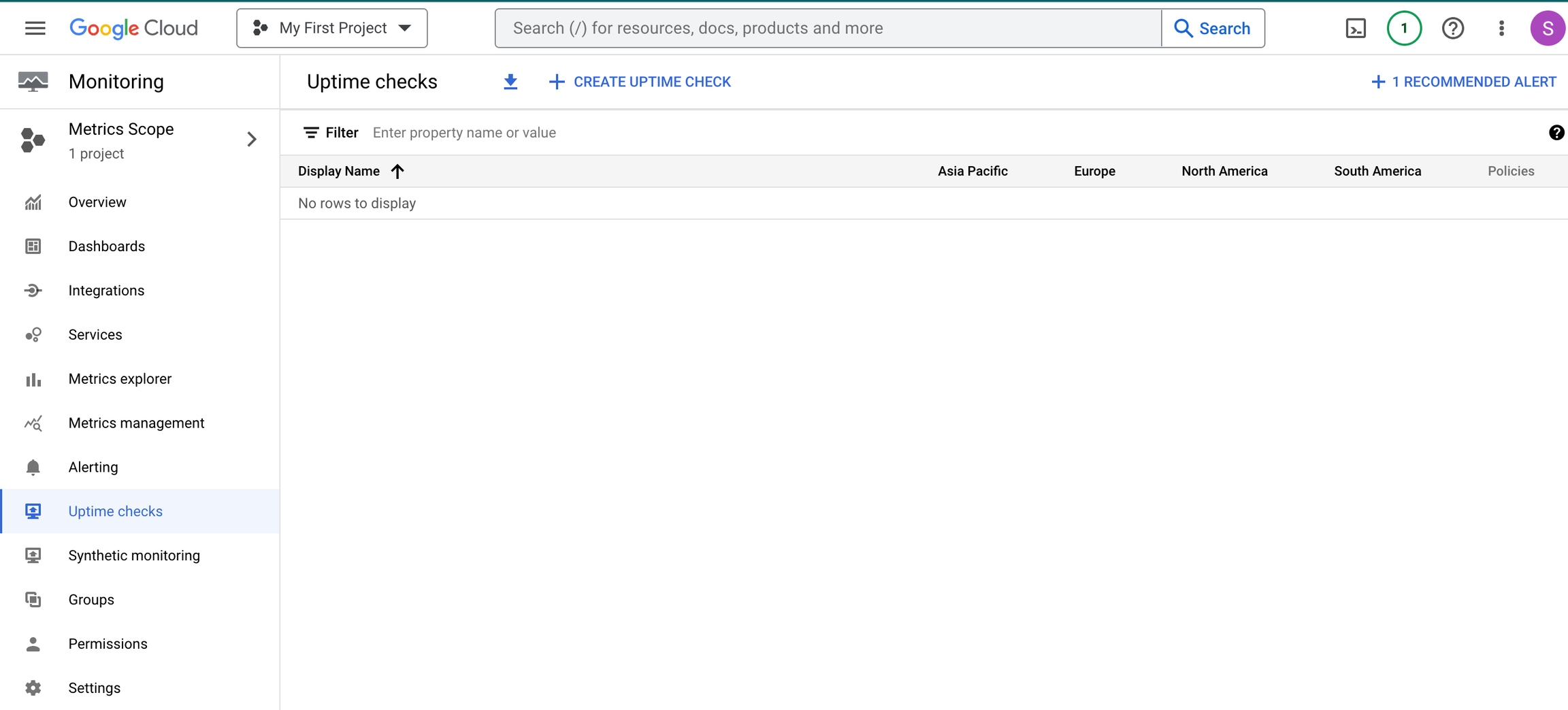 Select "Uptime checks" on the left hand panel.