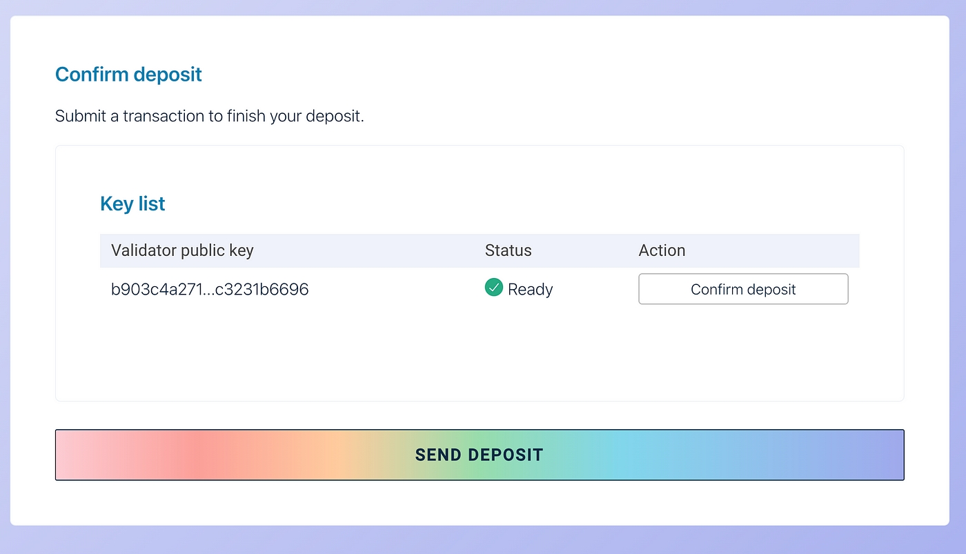 Once you are ready, click on "Send Deposit" and follow the instructions on Metamask or your other wallets.