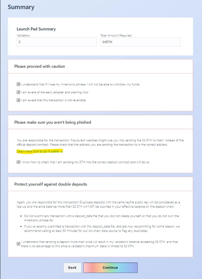 Here you will need to check all disclaimer boxes before you can proceed. But before that, make sure you are not being phished by clicking on "Learn here how to do it safely" as highlighted above.